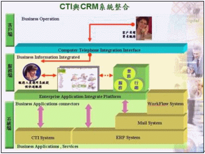 但傳統(tǒng)的CTI系統(tǒng)其重點(diǎn)乃是著重在服務(wù)工作的自動化方面,只提供簡單的客戶來電訊息提示,對于客戶進(jìn)一步的背景資料、嗜好、購買需求及歷史往來記錄并不清楚也無法實(shí)時得知,更別說想藉由CTI系統(tǒng)來提供客戶個人化的服務(wù)、有效節(jié)省通話時間、刺激其潛在的購買需求,為了達(dá)成上述的目標(biāo),唯有將CTI系統(tǒng)與CRM系統(tǒng)進(jìn)行整合,如此,客戶服務(wù)的質(zhì)量才可能達(dá)成某個程度的提升,而良好的客戶關(guān)系管理也將是未來呼叫中心運(yùn)作成功與否的關(guān)鍵所在。