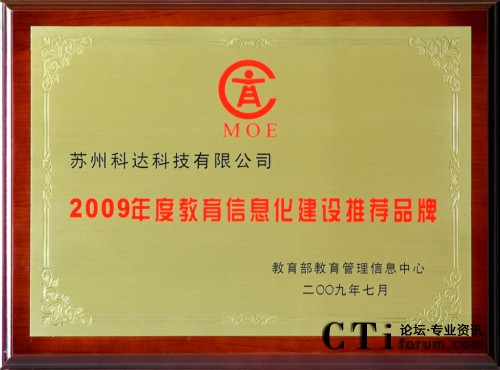 科達獲“2009年度教育信息化建設(shè)推薦品牌”