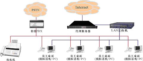 某中小企業(yè),無分支機(jī)構(gòu),現(xiàn)時(shí)有一個(gè)由傳統(tǒng)PBX構(gòu)建的電話系統(tǒng)和一個(gè)以太局域網(wǎng),兩者相互獨(dú)立,局域網(wǎng)通過一臺(tái)代理服務(wù)器用以太網(wǎng)或ADSL方式接入Internet。企業(yè)的語音通信由電話系統(tǒng)實(shí)現(xiàn);員工的日常工作需要使用計(jì)算機(jī)以及多種局域網(wǎng)和Internet服務(wù)。