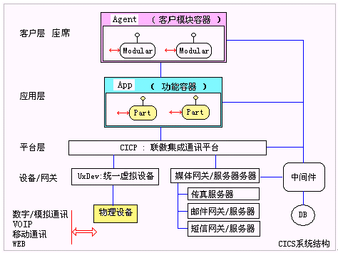 用CICP可以構(gòu)造高效率的集成語音、傳真、電郵、短信的企業(yè)集團級應用以及呼叫中心系統(tǒng)。