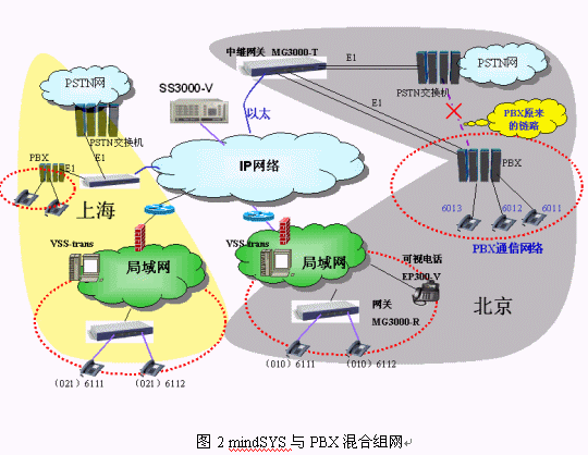傳統(tǒng)的通信網(wǎng)絡(luò)很發(fā)達(dá),很多機(jī)構(gòu)都通過(guò)小型程控交換機(jī)(PBX)來(lái)組建小型的電話網(wǎng)。在我們做VOIP系統(tǒng)的規(guī)劃時(shí),就需要考慮新的VOIP系統(tǒng)和原有的PBX如何協(xié)同工作的問(wèn)題。首先,我們還需要使用PBX,不能因?yàn)榻ㄔO(shè)新的系統(tǒng)就浪費(fèi)原有的投資。其次,大家都習(xí)慣了原來(lái)的PBX的使用方式,如4位內(nèi)部小號(hào),我們希望能夠不改變或盡量少改變用戶的使用習(xí)慣,這樣才能比較平滑的過(guò)渡到VOIP。MindSYS充分考慮了行業(yè)用戶的這種特點(diǎn),能夠與PBX聯(lián)合組網(wǎng),并且新的VOIP系統(tǒng)可以使用與原來(lái)PBX等長(zhǎng)的小號(hào),對(duì)用戶來(lái)說(shuō)新舊系統(tǒng)的使用習(xí)慣是沒(méi)有分別的,兩個(gè)系統(tǒng)可以互通。