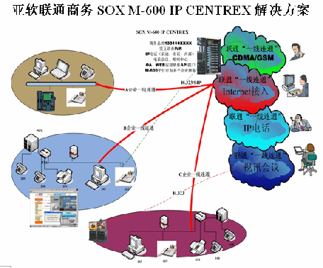 亞軟SOX融合通信解決方案也叫聯(lián)通商務解決方案,該方案是基于軟交換的可為多個集團用戶提供IP語音解決方案。SOX融合通信解決方案為集群用戶提供了區(qū)別于傳統(tǒng)集團內部、外部的通信方式,集團無需再購置PBX及為其支付維護費用。由于SOX融合通信解決方案是置于IDC托管中心并基于IP軟交換技術,所以沒有地域限制,具有集群性、可移動性等IP通信特征。