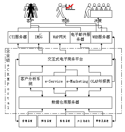 易虹eCRM解決方案的三個主要的CRM應(yīng)用為:客戶分析、電子服務(wù)(e-Service)和電子營銷(e-Marketing):