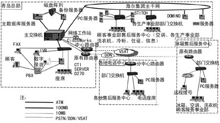 另外,海爾集團電話中心原有的顧客服務系統(tǒng)屬于第二代Call Center 系統(tǒng),話務員的工作量較大,服務功能受到很大的限制,特別是客戶信息及時收集的速度受到影響。為了滿足對市場快速響應的需要,海爾集團決定建立具有智能功能(如ACD:自動呼叫分配)的第三代呼叫中心,采用第三代具有ACD技術(如來電主叫號碼自動顯示、呼叫轉移、自動回撥等)的呼叫中心,向客戶提供更個性化的服務。