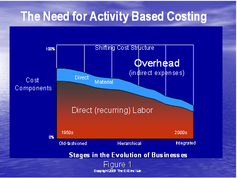 守舊的公司把注意力主要集中在直接勞動力成本上。如今,擅長管理的公司使用越來越少的直接勞動力和通過在管理費用和間接開支中投資,而使他們的生產效率越來越高。他們通過在技術領域、培訓和設備的投資,使員工更好、更快、成本更低的達成更好的成效。一般費用成本必須被融入成本計算中去,ABC正是由財務專家設計的使我們做到它的方法。