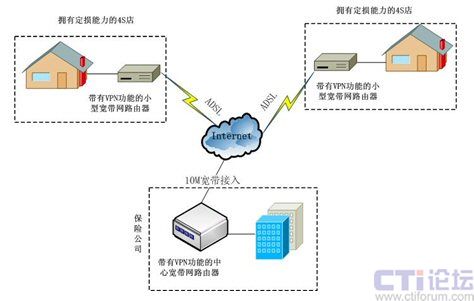 在保險(xiǎn)公司數(shù)據(jù)交換控制中心配置一臺(tái)具有VPN功能的中心寬帶網(wǎng)路由器,每條ADSL配置一個(gè)具有VPN功能的小型寬帶網(wǎng)路由器,并通過(guò)設(shè)置路由器即可成功建立起VPN網(wǎng)絡(luò)。這種網(wǎng)絡(luò)結(jié)構(gòu)不但有效的節(jié)約了成本,而且日后系統(tǒng)的擴(kuò)容的成本也非常的低,每增加一個(gè)點(diǎn)只需要申請(qǐng)一條ADSL就可以了。
