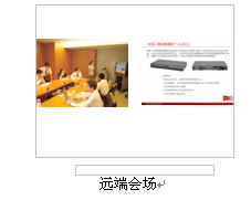 對于很多分會場通常只有1臺顯示設(shè)備的情況,H3C公司的視訊終端提供在1臺顯示設(shè)備上同時(shí)顯示"遠(yuǎn)端的會場圖像+遠(yuǎn)端膠片+本地會場圖像",顯示模式可通過終端遙控器靈活選擇:遠(yuǎn)端圖像、遠(yuǎn)端膠片、遠(yuǎn)端圖像+遠(yuǎn)端膠片、,實(shí)際顯示效果如下圖所示: