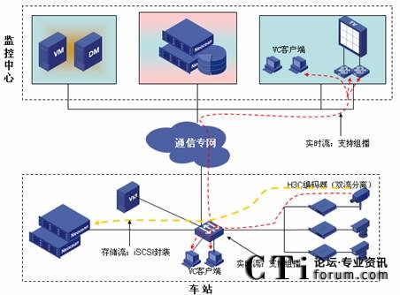 由此可見,視頻監(jiān)控IP化是軌道交通行業(yè)應(yīng)用發(fā)展必然,實際上,北京、成都、杭州、蘇州等城市新建的地鐵視頻監(jiān)控系統(tǒng),基本上都采用了IP技術(shù)解決方案。在杭州華三通信技術(shù)有限公司(簡稱:H3C)參與的杭州地鐵1號線、蘇州地鐵1號線等的CCTV項目中,拋棄了傳統(tǒng)的模擬矩陣,采用了H3C iVS IP視頻監(jiān)控解決方案,在控制中心與車站都可對前端圖像可以靈活進行控制,同時車站的管理工作站的用戶只能管理本站內(nèi)的視頻監(jiān)控圖像和進行圖像查詢,在控制中心可以進行所有車站的圖像管理。H3C iVS IP視頻監(jiān)控系統(tǒng)支持精確到秒級的高效檢索,當(dāng)出現(xiàn)緊急情況時,車站/控制中心都能夠即時回放1分鐘之前的事故現(xiàn)場圖像。H3C的方案采用了視頻流和控制流相分離的NGN架構(gòu),視頻流不用經(jīng)過傳統(tǒng)的流媒體服務(wù)器轉(zhuǎn)換,直接由前端編碼器發(fā)起iSCSI流寫入到后端的IP SAN磁盤陣列中,滿足端到端的“0”瓶頸視頻圖像存儲。在視頻監(jiān)控系統(tǒng)中的任何設(shè)備出現(xiàn)意外事件時如設(shè)備故障、設(shè)備掉電等,可以保證掉電之前的歷史圖像完整性,為分析事故原因提供依據(jù)。