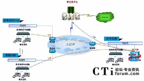 在香港和美國(guó)的分部,在今后需要統(tǒng)一的時(shí)候,也可通過(guò)小型IPPBX、FXS語(yǔ)音網(wǎng)關(guān)、或者IP話機(jī)與總部進(jìn)行互聯(lián)互通,做到異地完全虛擬統(tǒng)一,內(nèi)部互通免費(fèi),并在統(tǒng)一的信息管理系統(tǒng)中提高一體化辦公的效率。