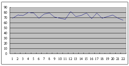 這是另外一個呼叫中心的服務(wù)水平,也是從早上8點開始,一直到晚上6點,每隔半個小時的服務(wù)水平趨勢。雖然平均服務(wù)水平也是在73左右,但震蕩幅度卻小了很多,服務(wù)水平只在81到68這中間震蕩。
