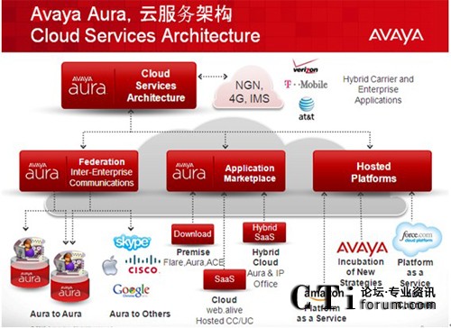 - 當(dāng)其他廠商還在爭(zhēng)論公有云和私有云的優(yōu)劣時(shí),Avaya已經(jīng)開(kāi)始部署企業(yè)的私有云—Avaya Aura 和運(yùn)營(yíng)商的公有云之間如何和諧共處;企業(yè)用戶的統(tǒng)一通信功能完全基于”按需服務(wù)激活”模式;