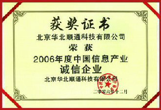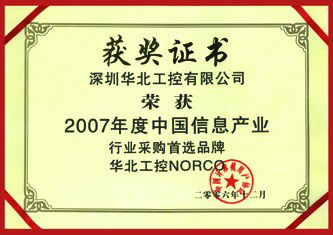 2007年1月16日,由中國計(jì)算機(jī)用戶協(xié)會(簡稱CCUA)主辦的“中國計(jì)算機(jī)用戶協(xié)會2006年度企業(yè)及產(chǎn)品推介頒獎(jiǎng)大會” 在北京世紀(jì)金源大飯店隆重召開,通過對中國境內(nèi)從事IT產(chǎn)品生產(chǎn)、銷售、集成和服務(wù)企業(yè)的經(jīng)營規(guī)模、服務(wù)能力、產(chǎn)品使用效果、企業(yè)誠信和持續(xù)發(fā)展能力等多項(xiàng)指標(biāo)進(jìn)行綜合評定,揭曉了中國信息產(chǎn)業(yè)2006年度優(yōu)秀企業(yè)評選與產(chǎn)品推介活動(dòng)結(jié)果。華北工控憑借其在業(yè)內(nèi)深入人心的影響,再次獲得“2006年度中國信息產(chǎn)業(yè)誠信企業(yè)獎(jiǎng)”和“2007年度中國信息產(chǎn)業(yè)行業(yè)采購首選品牌”。