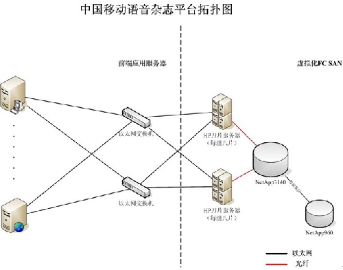 其中,NetApp FAS3140 配有 6 個(gè) 450GB 的 FC 磁盤和兩個(gè) 300GB FC 磁盤,裸容量為 46TB,用于運(yùn)行中國(guó)移動(dòng)的語(yǔ)音雜志業(yè)務(wù),采用 Socket 連接。NetApp FAS2050 則內(nèi)置有 12 塊1TB SATA 磁盤,裸容量為 12TB,主要用于測(cè)試高陽(yáng)公司 Oracle 數(shù)據(jù)庫(kù)和網(wǎng)站應(yīng)用等。
