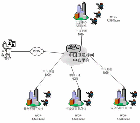 在眾多方案中,中國(guó)衛(wèi)通經(jīng)過(guò)全面比較,決定在10070全國(guó)客戶服務(wù)中心系統(tǒng)中采用“WGF-USB語(yǔ)音電話”作為人工坐席端接入設(shè)備,并且在全國(guó)分布式的呼叫中心系統(tǒng)中采用了“WGF分布式錄音解決方案”。