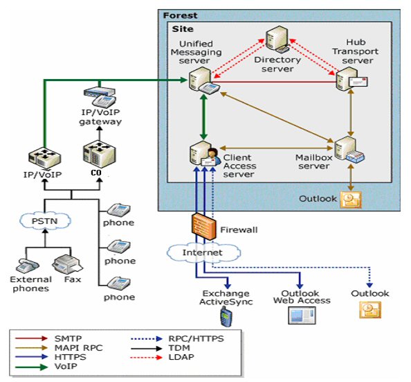 客戶端可以通過Outlook,Web,固話語音和手機接入,查看相關的郵件以及日程安排等信息。如下圖: