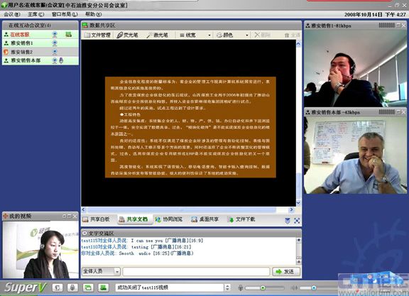 CTI論壇(ctiforum)05月19日消息: 自08年攜手視維Super-V視頻會議以來,中石油雅安分公司銷售部的日常工作會議高效及時(shí)地開展,尤其是在5.12四川大地震后,工作不但沒有中斷,而且足不出戶就可以給上級領(lǐng)導(dǎo)匯報(bào)工作,與同事交流營銷心得。而在以前,只能通過電話或者郵件,甚至長途跋涉聚集到一個(gè)地方舉行會議,既浪費(fèi)時(shí)間又增加營銷成本。這是繼中國重汽、新加坡協(xié)美集團(tuán)等跨國集團(tuán)公司倡導(dǎo)信息時(shí)代新營銷主義,實(shí)現(xiàn)高效運(yùn)營的又一典型案例應(yīng)用。