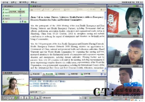 CTI論壇(ctiforum)10月16日消息:近日,世衛(wèi)組織用視維Super-V視頻會議軟件召開亞太地區(qū)會議,討論第三屆APEDNN的各項議題。參加會議的成員主要有中國、菲律賓、新加坡、馬來西亞、緬甸、日本、泰國等幾十個國家和地區(qū)的代表。