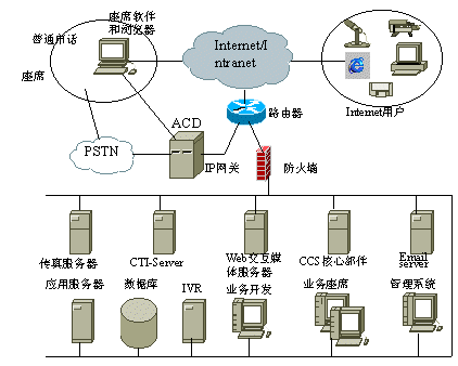 客戶服務(wù)中心(Call center),它是一種基于CTI(computer telecommunication integration)技術(shù),充分利用電信網(wǎng)和計算機(jī)網(wǎng)的多項功能集成與企業(yè)其它信息化系統(tǒng)連為一體的完整的綜合信息服務(wù)系統(tǒng),為客戶提供全新的現(xiàn)代化的客戶服務(wù)方式。