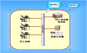 3Com NBX系統(tǒng)構(gòu)建了一個以個人電子郵箱為最終溝通手段的統(tǒng)一消息平臺。也就是說,我們將來自外界的各種消息(如:傳真、語音留言、Email等)都統(tǒng)一發(fā)送到您的個人電子郵箱中。您可以利用OutLook、Foxmail等通用客戶端郵件軟件接收對應(yīng)個人的各類信息,并可對各類信息進(jìn)行相應(yīng)的處理與編輯。