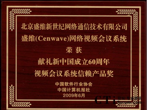盛維榮膺“獻(xiàn)禮新中國成立60周年•中國軟件行業(yè)視頻會議系統(tǒng)信賴產(chǎn)品獎”
