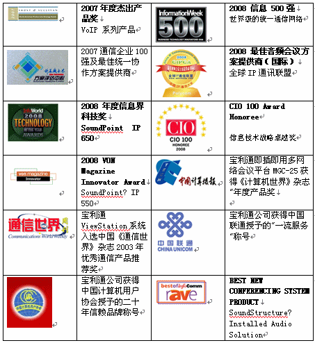 的產品一直在質量和易于使用性方面享有盛譽,下面是Polycom音頻產品獲得的部分獎項。