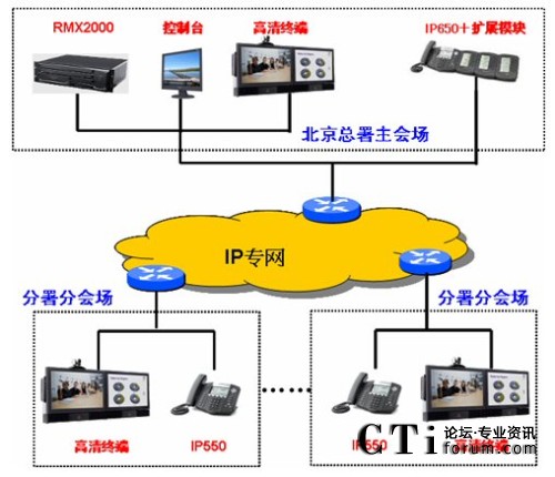 摘機直通熱線:各分會場的IP550話機可以設(shè)置成摘機直通中心會場的熱線模式,用戶只要拿起聽筒,電話自動接通中心會場,無需撥號。如果需要,各分會場同樣也可將IP550上設(shè)置成一鍵通話模式,定義中心會場的快速通話按鍵,出現(xiàn)問題時一鍵接通中心會場。