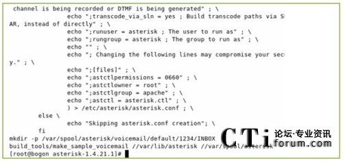 下圖為運行上述命令的輸出,從輸出我們可以發(fā)現一個問題,(使用本文的所用的軟件版本可能會出現的一個問題,其他的版本不一定會出現),/etc/asterisk/zapata-channels.conf