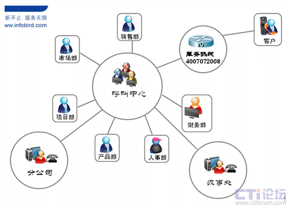 呼叫中心可以與企業(yè)的財務(wù)系統(tǒng)、OA系統(tǒng)、ERP系統(tǒng)、CRM系統(tǒng)等進(jìn)行整合,幫助企業(yè)輕松實現(xiàn)整個業(yè)務(wù)流程的管理、企業(yè)內(nèi)外溝通過程的管理。每個流程、每個節(jié)點都是可以被量化,可以被審查和糾正的。呼叫中心部門已經(jīng)不再局限于對客戶的服務(wù)提供,已經(jīng)完全成長為一個提升企業(yè)效率和運營能力的服務(wù)管理部門。通過下表我們看到呼叫中心在組織中的職能架構(gòu)發(fā)生變化,已經(jīng)完全成為與客戶溝通的最重要的部門之一。