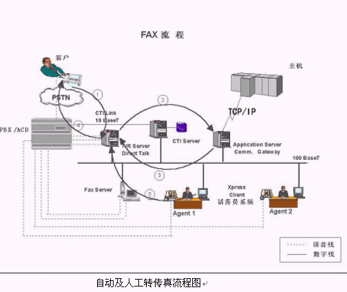 對Call Center而言,也有自動傳真和人工傳真兩種服務(wù),下面主要介紹前一種方式的流程。