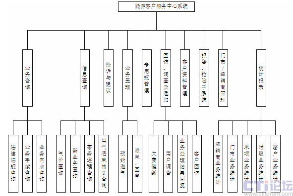 其中,主要功能劃分為:業(yè)務(wù)咨詢、信息查詢、投訴與建議、業(yè)務(wù)受理、專用瓶管理、回訪/調(diào)查/通知、報(bào)警/搶險(xiǎn)、門市/經(jīng)銷商管理、客戶信息管理以及統(tǒng)計(jì)報(bào)表等功能。