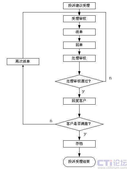 話務(wù)員確認(rèn)投訴和建議后由復(fù)審員再次確認(rèn)分析,然后把用戶的各種意見和合理化建議轉(zhuǎn)相關(guān)部門處理,對(duì)呼叫中心本身的投訴則轉(zhuǎn)班長(zhǎng)席處理。投訴受理系統(tǒng)可以設(shè)置處理部門和處理時(shí)限,完成告警輸出和各種統(tǒng)計(jì)分析工作,投訴和建議的處理結(jié)果可以根據(jù)需要采用人工、自動(dòng)、傳真、短信的形式反饋到用戶以提高用戶對(duì)服務(wù)的滿意度。