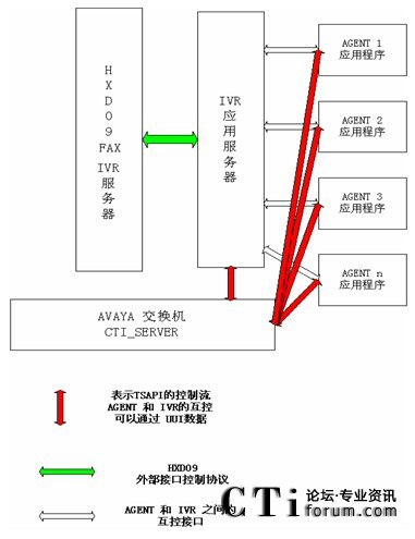 HXD09 和AVAYA交換機的連接在物理上一般都采用E1線連接,也可根據(jù)實際需求用模擬線連接。E1上信令可以采用AVAYA的LineSide、SS1、SS7、ISDN PRI等。根據(jù)各種信令的特點,一般采用LineSide或者ISDN PRI。在用LineSide時,主被叫號碼的獲取要通過AVAYA CTI SERVER,相對ISDN PRI可以直接通過信令獲取復(fù)雜一些,而且FAX或IVR的穩(wěn)定性也強一些。