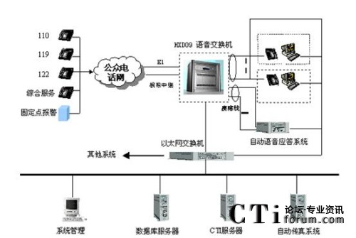 該系統(tǒng)主要分為電信子系統(tǒng)(完成聯(lián)動中心與各電信公司之間話音的傳輸、交換和分配,以及主叫號碼和主叫地址的自動查詢和傳輸?shù)龋、接警中心子系統(tǒng)(統(tǒng)一接聽和處理市民的報(bào)警、求助電話)、指揮調(diào)度子系統(tǒng)(或稱為處警中心,通過直觀的地理信息系統(tǒng)和數(shù)據(jù)庫,可以對所有的資源和警力分布了如指掌。通過一體化的無線數(shù)據(jù)傳輸和無線調(diào)度臺進(jìn)行方便的統(tǒng)一管理,指揮和調(diào)度)、信息網(wǎng)絡(luò)子系統(tǒng)(聯(lián)動中心的骨干網(wǎng)絡(luò),把各種數(shù)據(jù)數(shù)庫、接處警席位、移動的警用車載計(jì)算機(jī)等互聯(lián)在一起,形成一個強(qiáng)大的信息網(wǎng)絡(luò))、無線指揮調(diào)度通信子系統(tǒng)、大屏幕顯示子系統(tǒng)、地理信息子系統(tǒng)、GPS/GIS子系統(tǒng)。