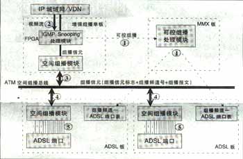 可實(shí)現(xiàn)高效的兩級組播;诳臻g總線上的組播信元技術(shù)實(shí)現(xiàn),與組播用戶數(shù)無關(guān),同一節(jié)目即使所有用戶加入該頻道,僅需復(fù)制一份,不用逐個用戶復(fù)制到每個用戶端口,極大節(jié)省了背板帶寬,減輕IP上行負(fù)擔(dān)?蓪(shí)現(xiàn)高性能硬件組播轉(zhuǎn)發(fā)。IP上行板采用超大規(guī)模FPGA硬件邏輯處理組播報文,ADSL板采用空間組播處理硬件芯片自動完成向每個ADSL端口(用戶)的組播復(fù)制,每ADSL端口組播帶寬6M。
