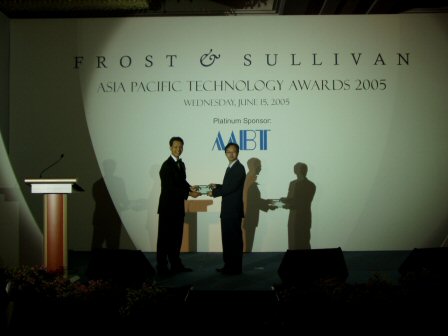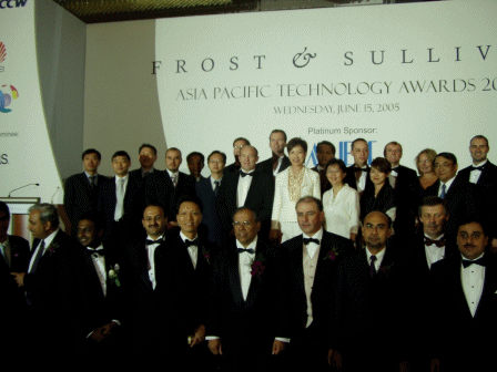 新加坡CommunicAsia2005展會(huì)期間,2005年6月15日晚—新加坡香格里拉飯店燈火輝煌,全球通信行業(yè)的精英公司濟(jì)濟(jì)一堂,共同見(jiàn)證了亞太地區(qū)一年一度的Frost & Sullivan亞太區(qū)技術(shù)大獎(jiǎng)的頒獎(jiǎng)禮的盛況。晚會(huì)期間共產(chǎn)生了6項(xiàng)運(yùn)營(yíng)商獎(jiǎng)項(xiàng)和11項(xiàng)供應(yīng)商獎(jiǎng)項(xiàng)。