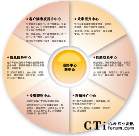 對于銀行業(yè)來說,聯絡中心已經成為為客戶提供優(yōu)質、快捷的金融理財服務的第二窗口。隨著電子化建設的不斷深入,寬帶、Internet和3G時代帶來的IP融合,聯絡中心為金融服務帶來了更廣泛的創(chuàng)新,未來的銀行聯絡中心將為客戶提供的金融服務趨于無所不能。銀行聯絡中心已經成為自助交易中心、投資理財中心、營銷推廣中心和信息服務中心,借助聯絡中心,銀行與客戶可以隨時隨地建立緊密的多媒體互動,提升客戶滿意度和服務效率。