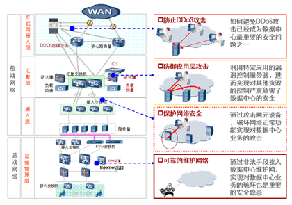 隨著各種黑客工具的推陳出新,數(shù)據(jù)中心面臨的安全威脅越來越大。數(shù)據(jù)中心網(wǎng)絡(luò)的安全必須從多個維度進行設(shè)計。