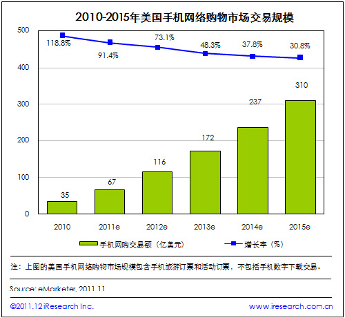 2015年美國手機(jī)網(wǎng)購交易規(guī)模將達(dá)到310億美元