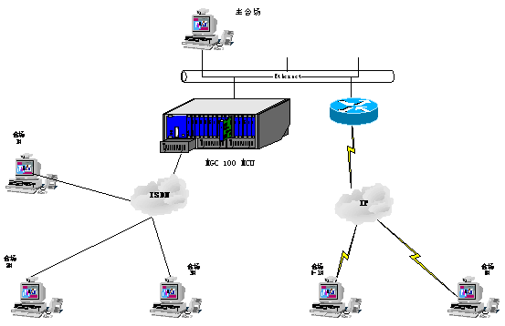 MCU(Multimedia Collaboration Unit)--多媒體資訊交流單元,一個能為多個終端用戶提供電視會議以及帶視象、話音和數據的多媒體資訊交流的實時網絡產品。