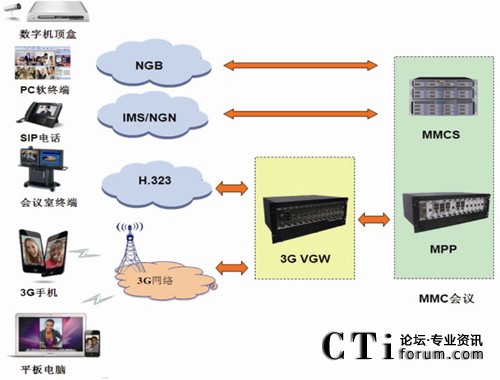 鑒于傳統(tǒng)視頻會議只能在固定地點(diǎn)、專用線路,通過專用設(shè)備召開語音和視頻會議的局限性。3G移動(dòng)視頻會議解決方案實(shí)現(xiàn)了將會議拓展到整個(gè)互聯(lián)網(wǎng)和移動(dòng)網(wǎng)絡(luò),用戶隨時(shí)隨地可以使用3G手機(jī)和PC,通過互聯(lián)網(wǎng)、移動(dòng)網(wǎng)絡(luò)即可便捷地接入到現(xiàn)有會議系統(tǒng)中,真正實(shí)現(xiàn)跨越地域、空間的全方位會議。