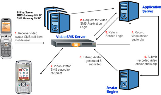 化身引擎 — 化身引擎的一個關鍵功能是接收來自應用服務器的音頻片斷,并采用復雜的算法對語音消息和化身圖像的唇動進行同步,處理后的結(jié)果就是一段“正在說話”的化身視頻。處理文件被發(fā)送回應用服務器,在視頻SMS服務器存取這些視頻文件進行播放之前,這些文件將被存放在應用服務器上。