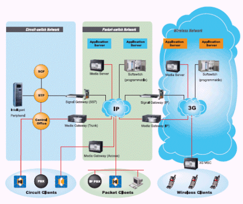 、隨選視訊(Video Streaming) 等應(yīng)用,著重在聲音影像,深具高度收益的潛力,而被服務(wù)供貨商大力推廣。但是服務(wù)提供業(yè)者為了讓使用者能輕易的在現(xiàn)行設(shè)備上溝通聲音影像,必須肩負(fù)極高的成本,同時(shí)運(yùn)營兩種網(wǎng)絡(luò)。因此在不損壞傳統(tǒng)語音網(wǎng)絡(luò)穩(wěn)定運(yùn)作而又能快速建置整合新一代IP通訊建設(shè)的限制下,『寬頻通訊平臺(tái)』便以網(wǎng)關(guān)(Gateway)的形式出現(xiàn)扮演接口角色,成為網(wǎng)絡(luò)設(shè)備供貨商及電信系統(tǒng)業(yè)者最佳的解決方案。不但同時(shí)支持IP網(wǎng)絡(luò)又負(fù)起和傳統(tǒng)網(wǎng)絡(luò)以SS7為主的PSTN(Public