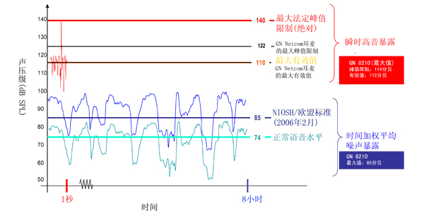 絕對(duì)聲音峰值是指能傳送到接收器的最大音值。140分貝是國際認(rèn)可的耳朵噪聲接觸絕對(duì)峰值的法定限值。所有出于聽力安全考慮的耳麥產(chǎn)品的絕對(duì)聲音峰值都應(yīng)遠(yuǎn)低于140dB。通常應(yīng)該在110-120dB以內(nèi),以避免人耳在受到瞬時(shí)聲震時(shí)受損。