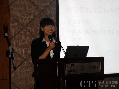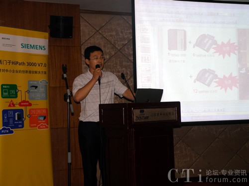 圖:廣州三信事業(yè)部經(jīng)理?xiàng)畋糖褰榻B西門子HiPath3000中小型酒店解決方案