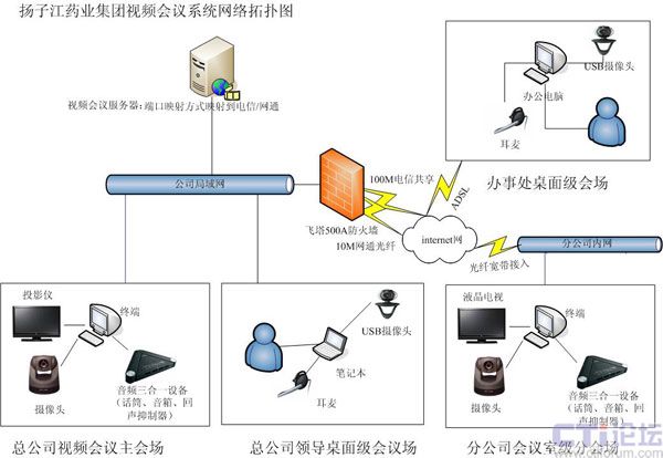 揚子江藥業(yè)集團網(wǎng)絡基礎建設以后,泰州公司總部擁有100M光纖共享接入,各個分支機構通過ADSL接入到互聯(lián)網(wǎng),一般每個分支單位大約5人左右,負責1個省的業(yè)務。在現(xiàn)有的網(wǎng)絡基礎上構建了V2 Conference系統(tǒng),來滿足各地之間的溝通需求,系統(tǒng)的大范圍使用大大的提高辦公效率,節(jié)省時間及會議成本,一期已經(jīng)建成20個并發(fā)點的網(wǎng)絡視頻會議系統(tǒng)。隨著各部門遠程通信需求日益增多,充分發(fā)揮現(xiàn)有網(wǎng)絡優(yōu)勢,根據(jù)揚子江藥業(yè)網(wǎng)絡實際規(guī)模,對V2 Conference視頻會議系統(tǒng)進行擴容到全國50個重點分支,改造以后V2視頻會議系統(tǒng)作為公司主要通訊手段。實現(xiàn)各個分公司、辦事處充分應用網(wǎng)絡視頻會議系統(tǒng)進行音頻、視頻和數(shù)據(jù)的多方溝通,提高辦公效率。用于集團的財務會議、生產(chǎn)調(diào)度會議、銷售會議、物流會議、人力資源會議等會議。