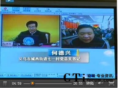 CTI論壇(ctiforum)2月25日消息(記者 潘婷):新春佳節(jié),浙江省委書記趙洪祝通過(guò)中國(guó)電信遠(yuǎn)程教育網(wǎng)絡(luò)視頻與部分村支部書記、村官代表進(jìn)行了遠(yuǎn)程互動(dòng),探討農(nóng)村管理的同時(shí)向基層村干部拜年、慰問(wèn)。