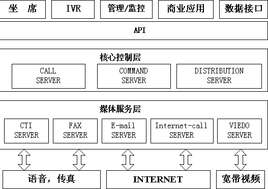 核心控制層用于對來自不同媒介的客戶進(jìn)行識別和路由,幫助企業(yè)最大限度地對每個連接加以利用,實現(xiàn)對所有客戶的全面交互管理,能夠?qū)M(jìn)入呼叫中心的語音呼叫、電子郵件、Web聯(lián)系和傳真通信等所有類型的多媒體交互進(jìn)行路由、通告和告警?梢詫Σ煌挠脩簟⒉煌穆(lián)系方式進(jìn)行統(tǒng)一調(diào)度和個性化處理,并集中進(jìn)行管理、定制和用戶來訪信息的記錄。