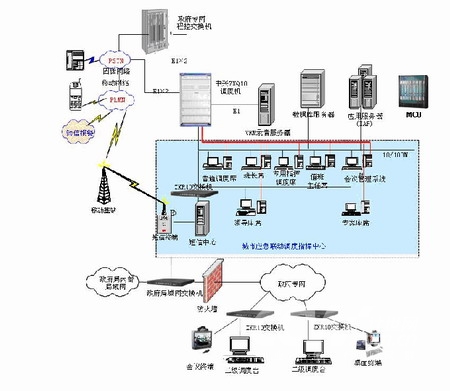 下圖是一個城市應(yīng)急聯(lián)動中心具體組網(wǎng)拓?fù)洌?br>