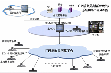 憑借全面的融合通信產(chǎn)品和解決方案、豐富的電子政務(wù)工程建設(shè)和實(shí)施經(jīng)驗(yàn),中興通訊為廣西“金質(zhì)工程”(一期)系統(tǒng)“量身定做”出一整套基于IP融合、使用方便靈活的解決方案:將整個(gè)系統(tǒng)分為兩個(gè)部分,即區(qū)質(zhì)監(jiān)局一級(jí)節(jié)點(diǎn)信息中心、各地市質(zhì)監(jiān)局及相關(guān)研究機(jī)構(gòu)共計(jì)15個(gè)二級(jí)節(jié)點(diǎn)信息中心,在管理上體現(xiàn)垂直的系統(tǒng)架構(gòu)。整個(gè)網(wǎng)絡(luò)可以看作一個(gè)分級(jí)的星形網(wǎng)絡(luò),結(jié)構(gòu)簡(jiǎn)單、易于擴(kuò)展。