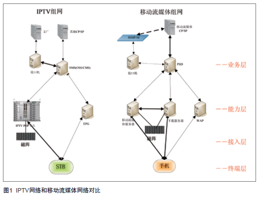 如圖1所示,左邊為IPTV網(wǎng)絡(luò),右邊為移動流媒體網(wǎng)絡(luò)!